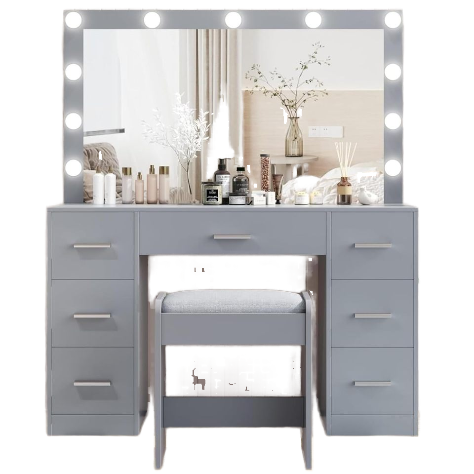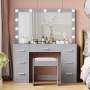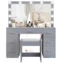 Desk Stool Lighted Mirror 3 Color Lighting Modes Adjustable Dressingt Table