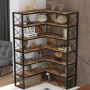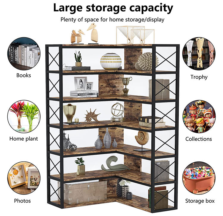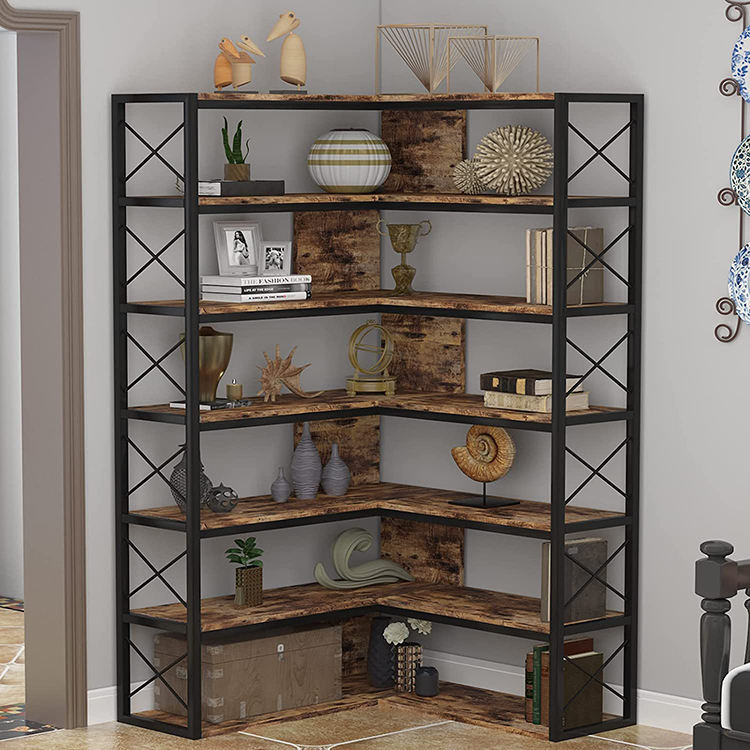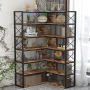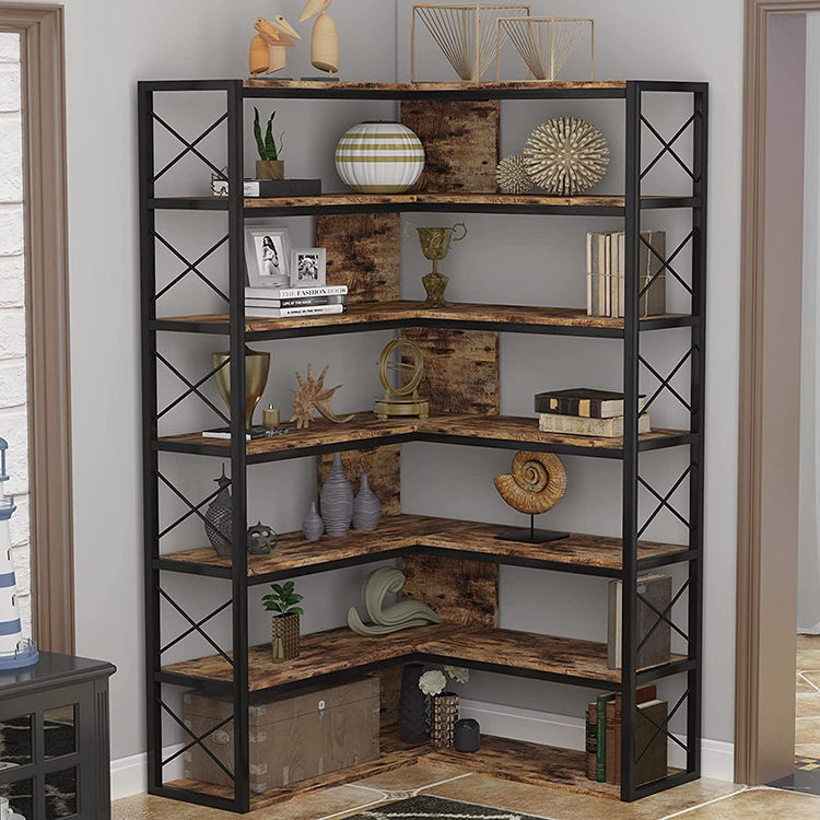 L Shape Retro Industrial Corner Book Shelf Metal Frame Open Storage Cabinet Bookcase