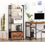 5 Tier Wooden Rustic Bookshelves Living Room Wood and Metal Storage Shelf with 2 Storage Drawers