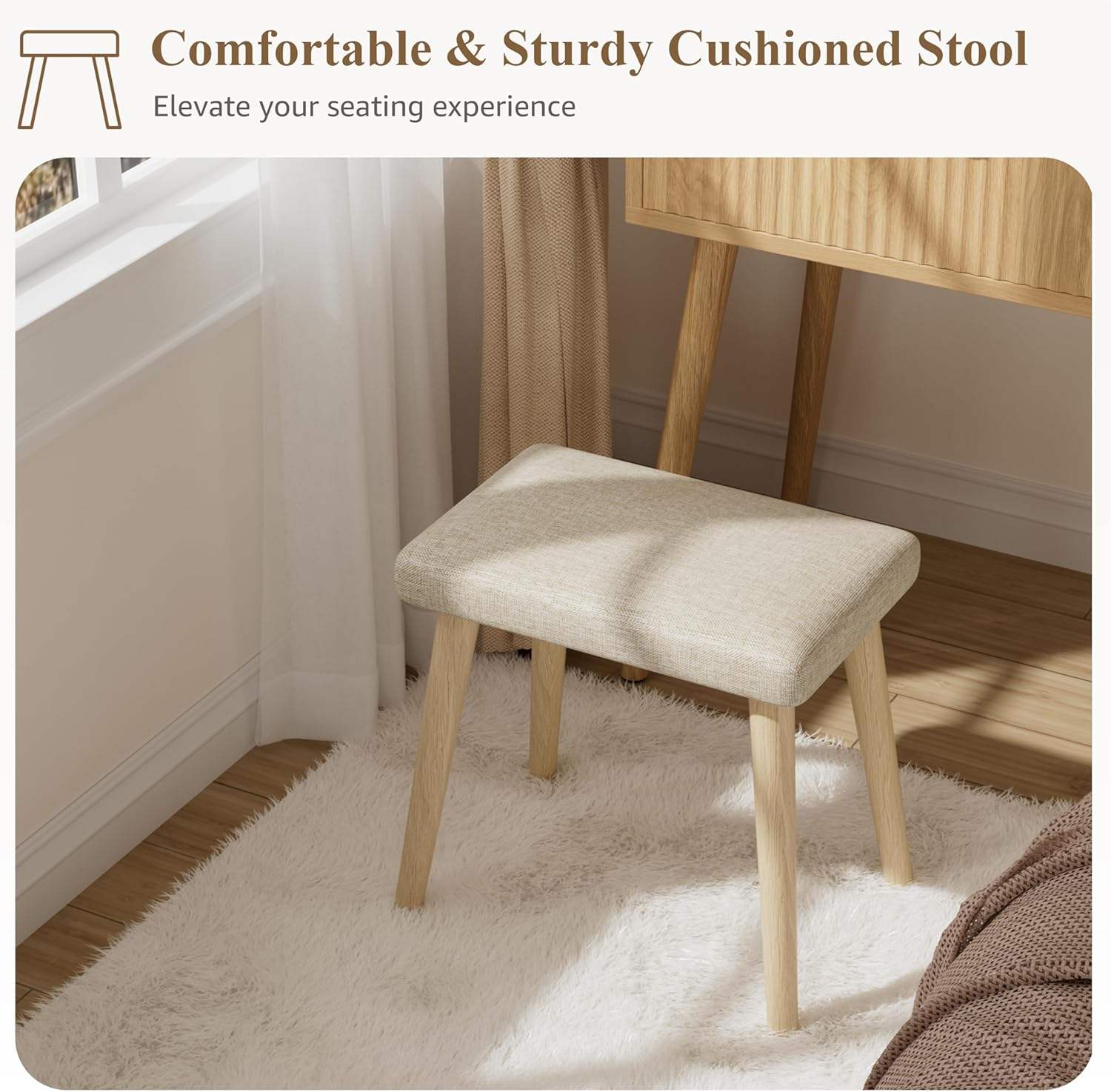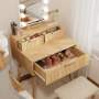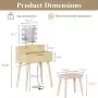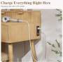 Adjustable Height Dressing Table Vanity Desk Mirror Fluted Wood Lighted Compact Charging Station for Kids