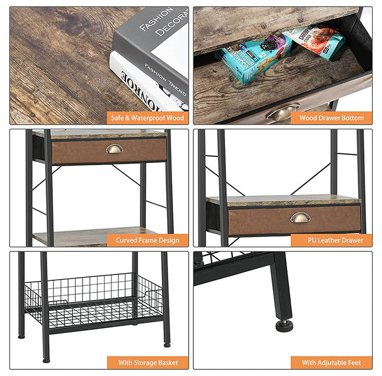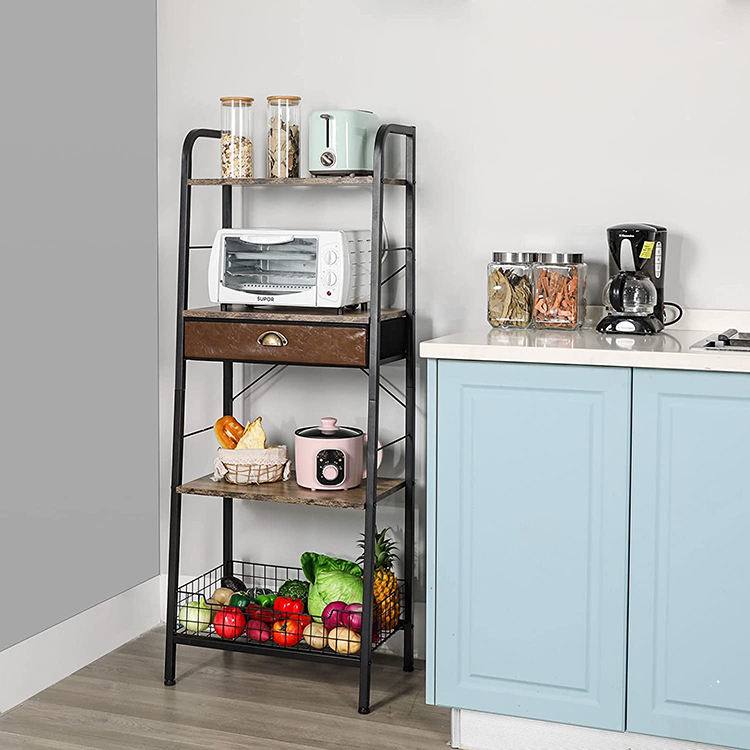 Industrial Freestanding 4 Tier Ladder Bookshelf Ladder Shelves Bookcase with Drawer