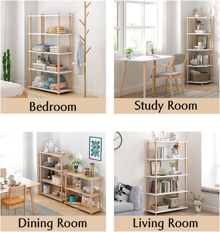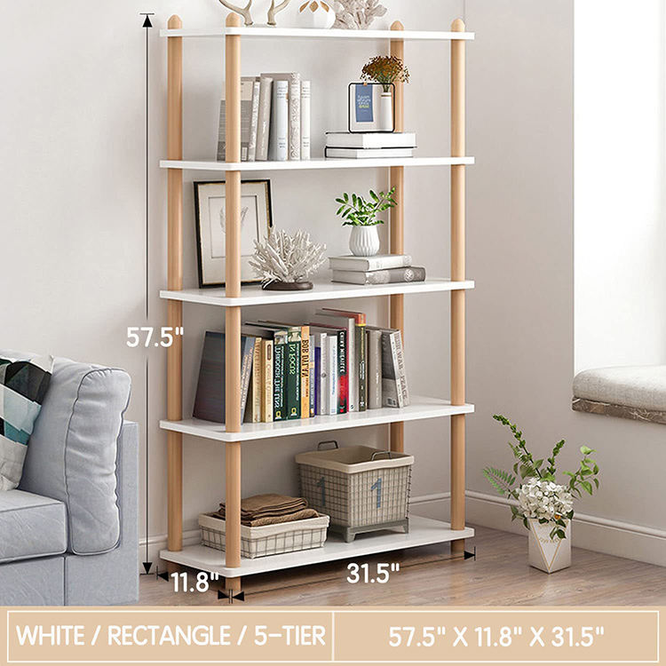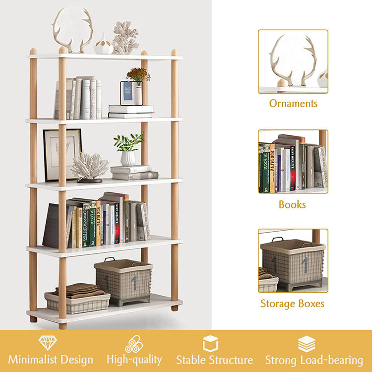 Nordic 5 Tier Wooden Shelf Bookcase Modern Open Free Standing Storage Rack Multifunctional Bookshelf