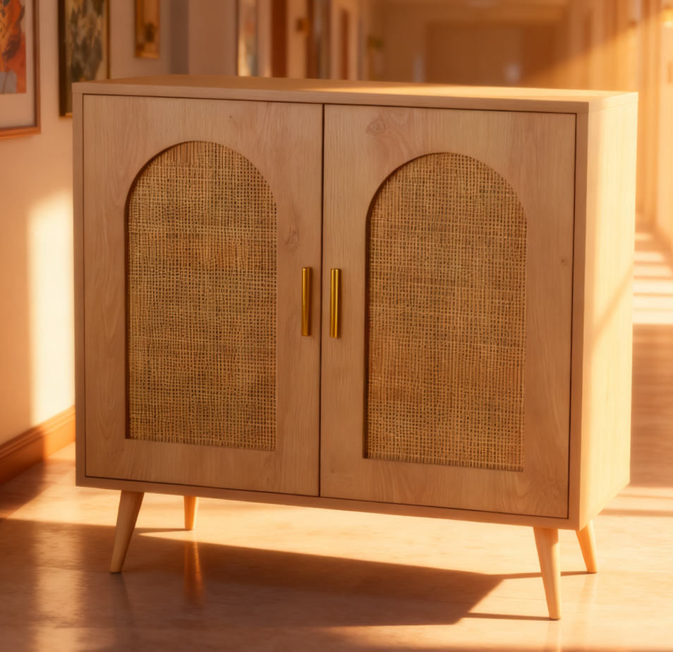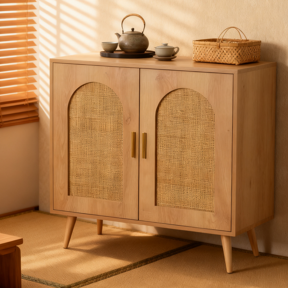 Nordic-Japandi Style Living Room Cabinet with Panel Doors